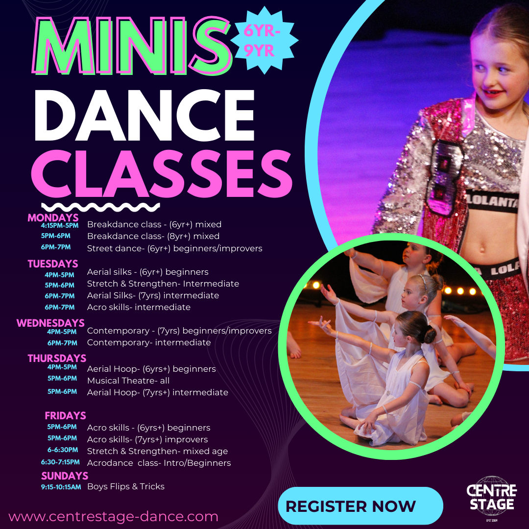 All our classes suitable for dancers between 6 and 9 years old are listed below. To book on, follow the link at the bottom of the page to our Book Your Trial page!